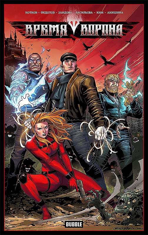 В период с декабря 2013 по февраль 2014 издавался первый кроссовер между линейками комиксов Bubble: была выпущена совместная сюжетная арка «Инока» и «Бесобоя» под названием «Инок против Бесобоя», в которой рассказывается о противостоянии главных героев соответствующих серий[85][21]. Впоследствии вышел другой кроссовер, «Время Ворона» (2015), чьи события затрагивают все имевшиеся на тот момент серии издательства[86]: помимо самой одноимённой мини-серии комиксов, выходившей с октября 2015 по март 2016 года, частью событий кроссовера были и одиночные выпуски основных линеек Bubble. «Время Ворона» рассказывает об объединении главных героев комиксов Bubble — майора Грома, Красной Фурии, Инока и Бесобоя — в противостоянии восставшему из мёртвых богу лжи и обмана Кутху, чей образ был основан на одноимённом персонаже ительменской мифологии — воплощении духа ворона. Этот кроссовер является первым событием такого рода и масштаба в российской индустрии комиксов[39][87]. Другим кроссовером в формате графического романа стал «Хроники Инока: Штурм Берлина» (2015), где рассказывается о дедах Андрея Радова и майора Грома в годы Великой Отечественной войны[88][89].