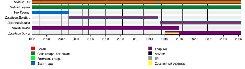 - Мэттью Так (англ. Matthew Tuck) — вокал, ритм/соло-гитара (1998 — н.в.), бас-гитара (в студии) (2008 — н.в.)