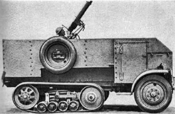 Ходовая часть — полугусеничная, состоявшая из переднего управляемого автомобильного моста и расположенного сзади ведущего гусеничного движителя[1][2].