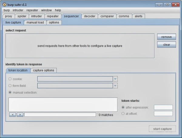 - Sequencer — анализатор качества случайности в выборке элементов данных. Используется для тестирования сеансовых маркеров приложения и других важных элементов данных, которые должны быть непредсказуемыми, например, маркеров анти-CSRF (Cross-Site Request Forgery), маркеров сброса пароля и других критичных для безопасности токенов. Sequencer помогает выявить слабые места в алгоритмах генерации случайных данных[6][7].