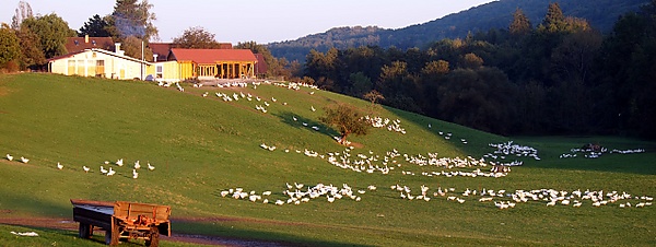 Индейки: Индейки свободного выгула имеют возможность находиться на открытом воздухе в течение всего дня. Участок, где они содержатся, должен быть покрыт растительностью и иметь достаточно свободного пространства. Свежий воздух и солнечный свет, которые птицы получают, благотворно влияют на их здоровье, особенно на зрение и дыхательную систему. Индейки могут свободно двигаться и вести себя естественно, что способствует укреплению и развитию мышц ног. Для систем свободного выгула часто выбирают медленно растущие породы индеек[25].