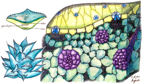 В хлоренхиме культивируемых кактусов и агав уровни кальция, магния и марганца, как правило, выше, чем у большинства других сельскохозяйственных растений. Примечательно, что высокое содержание кальция характерно и для других таксонов с САМ, таких как алоэ, толстянковые и клузия. По-видимому, большинство САМ-растения относится к кальциотрофным видам. Ионы Ca2+ вместе с K+, Na+ и Mg2+ служат противоионами для большого пула органических кислот, который не подвержен суточным колебаниям и, как считается, способствует осмотической стабилизации. Кроме того, Ca2+ может связываться с отрицательно заряженными группами белков и липидов, снижая текучесть и проницаемость мембран[13].