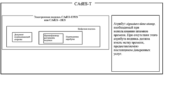 - с помощью неподписываемого атрибута signature-time-stamp, включенного в электронную подпись;