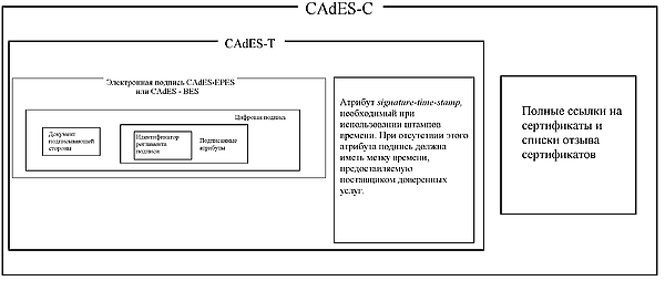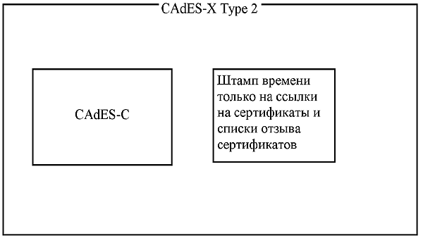 Этот формат подписи отличается от CAdES-X Type 1 только тем, что штамп времени ставится не на всю подпись CAdES-C, а только на полные ссылки на сертификаты и списки отзыва сертификатов.