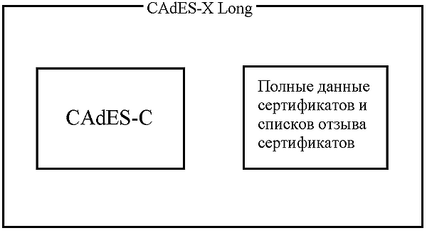 CAdES-X Long - формат долгосрочной расширенной подписи. Этот формат добавляет в CAdES-C атрибуты certificate-values и revocation-values, которые представляют собой полные данные сертификатов и списки отзыва сертификатов. Этим обеспечивается доступ ко всей информации о сертификатах и отзывах, необходимых для проверки подписи CAdES-C (даже если их исходный источник недоступен), и предотвращается возможность утери этой информации.