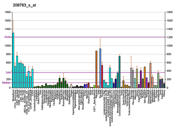 Белок экспрессируется всеми клетками организма, кроме эритроцитов.