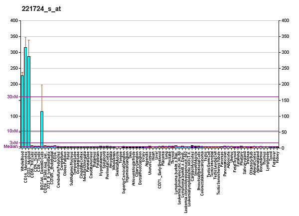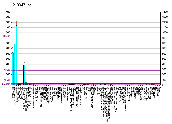 Белок экспрессирован в основном на гематопоэтических клетках: на всех циркулирующих антиген-представляющих клетках, включая дендритные клетки, миелоидные клетки, моноциты, макрофагы, B-лимфоциты и эпидермальных клетках Лангерганса. Кроме этого, экспрессирован на лейкоцитах, нейтрофилах периферической крови, в меньше степени - в селезёнке, лимфатических узлах и костном мозге.