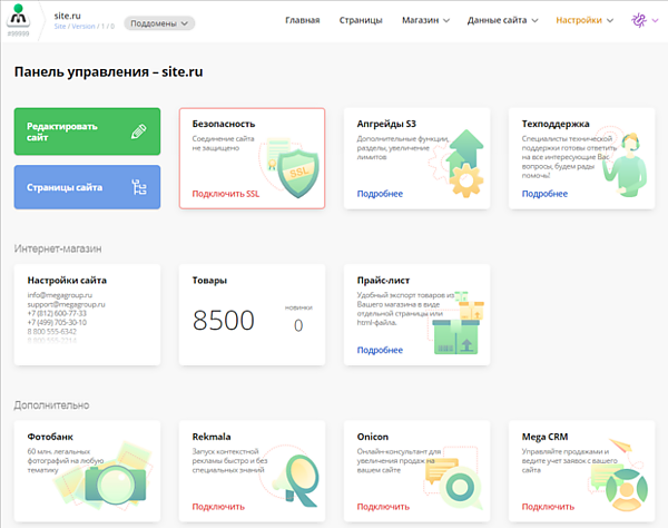 CMS.S3 включает больше 50 инструментов для редактирования содержимого сайта, рекламного продвижения и защиты веб-проектов.