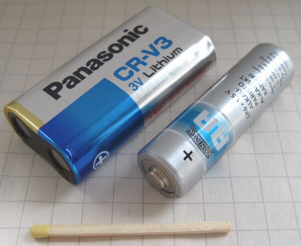 CR-V3 — формат литиевых батарей питания для малой бытовой техники (например, фотоаппараты). Выводы "+" и "-" расположены с одного торца, повторяя расположение двух последовательно подключенных АА батареек 1,5 В.