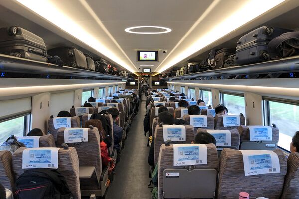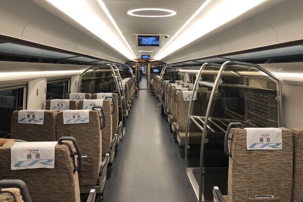 Стандартно, поезда представлены в трехклассной компоновке. Кресла вращаются, чтобы пассажир всегда сидел по ходу поезда. В вагонах есть традиционный и европейский туалеты.