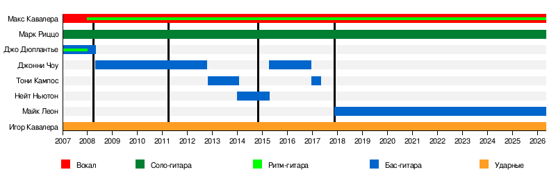 - Макс Кавалера — вокал, ритм-гитара (2007—наши дни)