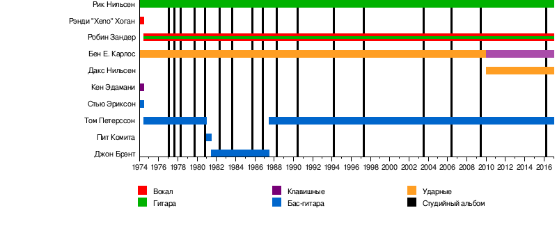- Рик Нильсен — соло-гитара, бэк-вокал (1974—наши дни)