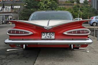 С 1959 года Chevrolet Impala стал отдельной моделью, и сразу же — самым коммерчески успешным Chevrolet. Модель 1959 года отличалась очень выразительным стайлингом, задние фонари были горизонтальными каплевидными, крышка багажника — сложного в сочетании с кузовными боковинами дизайна, напоминающего крылья птицы, или иначе букву «V».