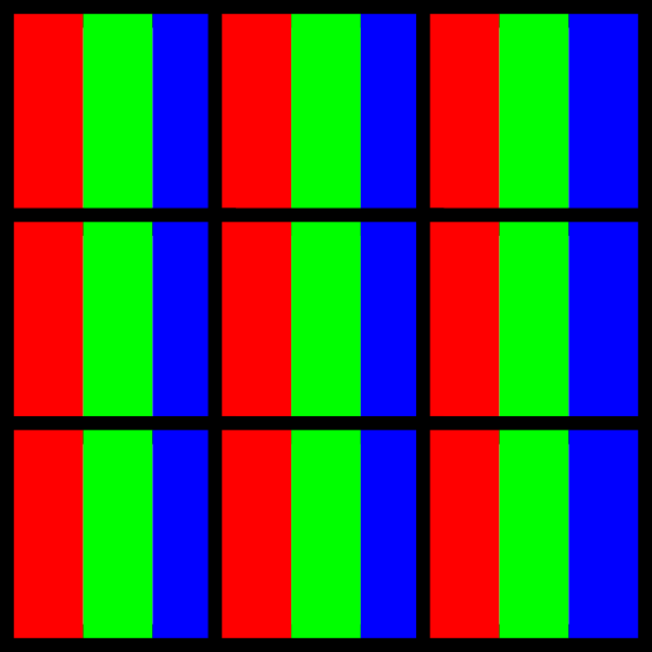 Таким образом, яркость каждого субпикселя распределяется между пятью смежными субпикселями, и цветные артефакты становятся менее заметными.