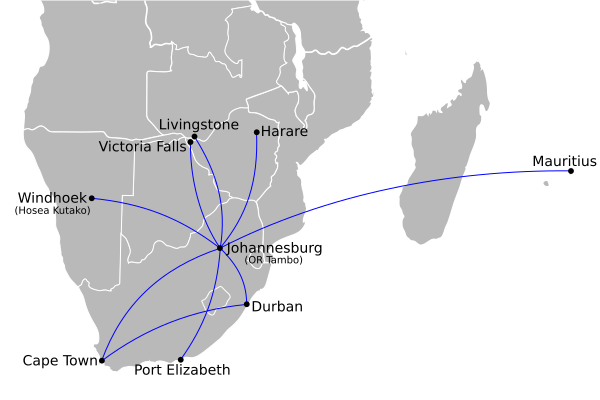 Портом приписки авиакомпании и её главным транзитным узлом (хабом) является Международный аэропорт имени О. Р. Тамбо в Йоханнесбурге, основными пунктами назначения — Международный аэропорт Кейптаун и Международный аэропорт имени короля Чаки в Дурбане[2].