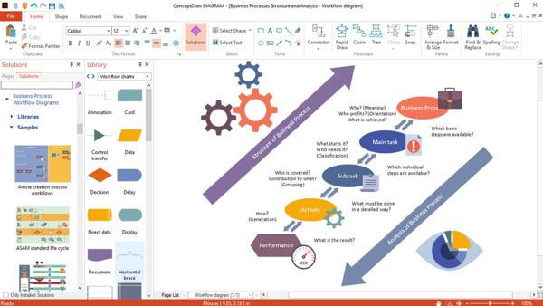 Содержит набор инструментов для векторного рисования, подборку проблемно-ориентированных шаблонов, примеров, готовых объектов и клип-артов, собранных в тематические библиотеки, а также встроенный режим презентаций[3].