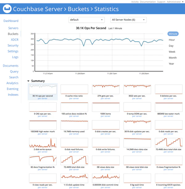 Позволяет организовать хранение данных как на одном узле, так и в форме распределённой системы, которая размещает данные поверх группы серверов. Есть встроенные средства для обеспечения высокой доступности, самовосстановления в случае сбоя обслуживающих хранилище узлов (данные могут дублироваться на разных узлах) и построения сегментированных хранилищ, копии которых разнесены по разным дата-центрам. Поддерживаются как однонаправленные («ведущий — ведомый»), так и двунаправленные («ведущий — ведущий») режимы репликации. Поддерживается создание первичных и вторичных индексов, а также индексов по нескольким ключам. Для дополнительной оптимизации производительности применяются встроенные механизмы кэширования в оперативной памяти и средства автоматической генерации индексов.
