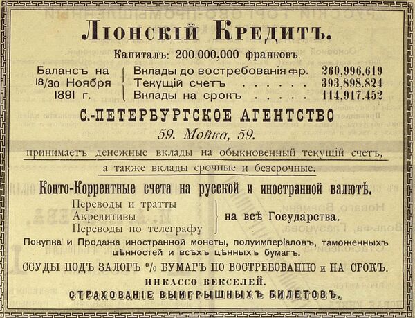 В 1867 году владелец «Лионского кредита» Жермен отправил в Санкт-Петербург представителя банка Э. Клейнмана для выхода на российский рынок. «Лионский кредит» предлагал деньги под высокие проценты. Обязательным условием выдачи кредита была гарантия полного возврата средств[6]. Среди потенциальных клиентов Жермен видел правительство России, крупные железнодорожные компании, города и торговые дома. За российский рынок финансов уже боролись банки Германии, Великобритании, Голландии и Франции. В условиях высокой конкуренции «Лионский кредит» не достиг успеха. Однако Жермен не оставлял попыток интеграции в российский рынок, и контакты с ведущими банковским домами продолжали налаживаться.