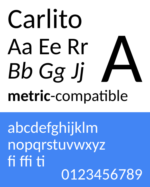 В 2013 году компания Google выпустила дополнительный пакет Crosextra (Chrome OS Extra) с шрифтами Carlito (что соответствует Microsoft Calibri) и Caladea (соответствует Cambria).[6] Эти два шрифта соответственно являются метрически скорректированными версиями шрифтов Lato[7] и Cambo[8], оба доступны на Google Fonts.