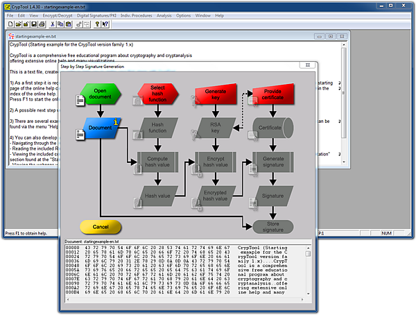 Целью проекта CrypTool является ознакомление пользователей с современным инструментом для электронного обучения, способным помочь пользователям добиться успеха при изучении информации в области безопасности или криптографии[1].