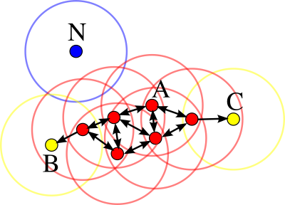 - Точка A q достижима из p, если имеется путь с и , где каждая точка достижима прямо из (все точки на пути должны быть основными, за исключением q).
