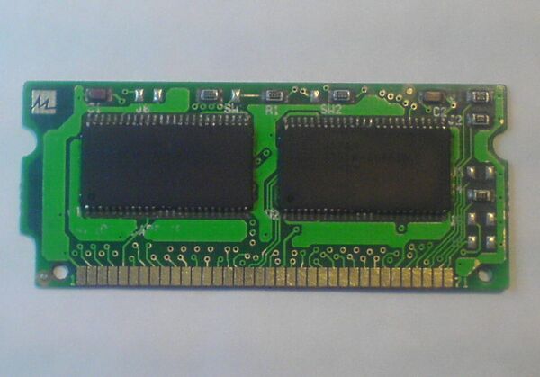 DIMM (англ. dual in-line memory module) — модули памяти, представляющие собой длинные прямоугольные платы с рядами контактных площадок вдоль обеих сторон платы. Устанавливаются в разъём подключения вертикально и фиксируются по обоим торцам защёлками. Микросхемы памяти на них могут быть размещены как с одной, так и с обеих сторон платы.
