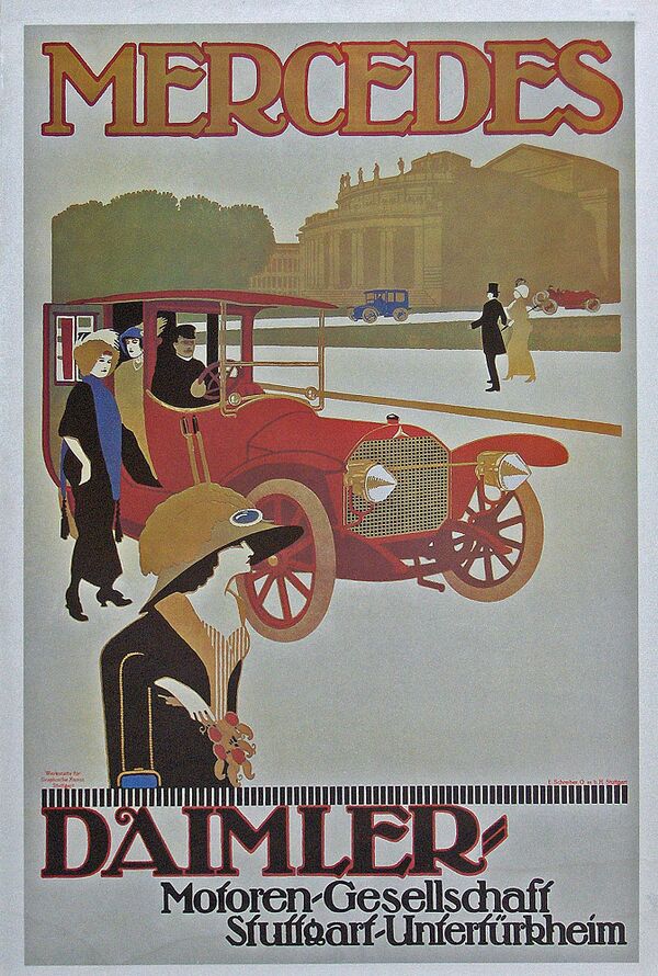 В послевоенное время автомобильная промышленность Германии переживала серьёзные проблемы. Для решения финансовых проблем компания Benz & Cie. предложила DMG объединиться ещё в 1919 году, однако компания Даймлера официально отклонила предложение в декабре того же года. В 1922 году штаб-квартира компании была перенесена из Унтертюркхайма в Берлин. Инфляция 1923 года, экономический кризис и спад экономики побудили DMG выпустить собственные акции на биржу. Для того, чтобы сохранить фирму на плаву, необходимо было принимать решение о реорганизации предприятия. В результате было решено объединятся с одной из крупнейших автомобилестроительных фирм — Benz & Cie. Начало слиянию было положено 1 мая 1924 года достижением между фирмами соглашения об обоюдных интересах. От лица Benz & Cie. выступал генеральный директор Вильгельм Киссель. Началось приведение к общему знаменателю финансовой отчётности, технической документации, ознакомление с методами работы друг друга. В том же 1924 году рекламные художники получили заказы на создание тематических плакатов и разработку нового фирменного стиля.