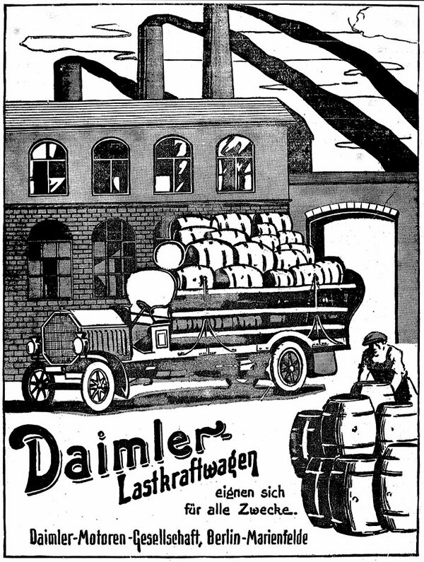 В 1897 году было налажено производство легковых коммерческих автомобилей Daimler Lastwagen. В то время они были очень успешными в Великобритании. На первом автосалоне в Париже (1898 год) был представлен 5-тонный грузовик с двигателем, установленным в передней части автомобиля.
