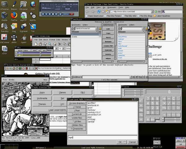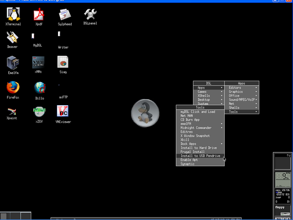 Рабочий стол X-DSL основан на Fluxbox с приложениями для электронной почты, проигрывания музыки и многого другого. Также можно установить новые приложения, загрузив расширения MyDSL.