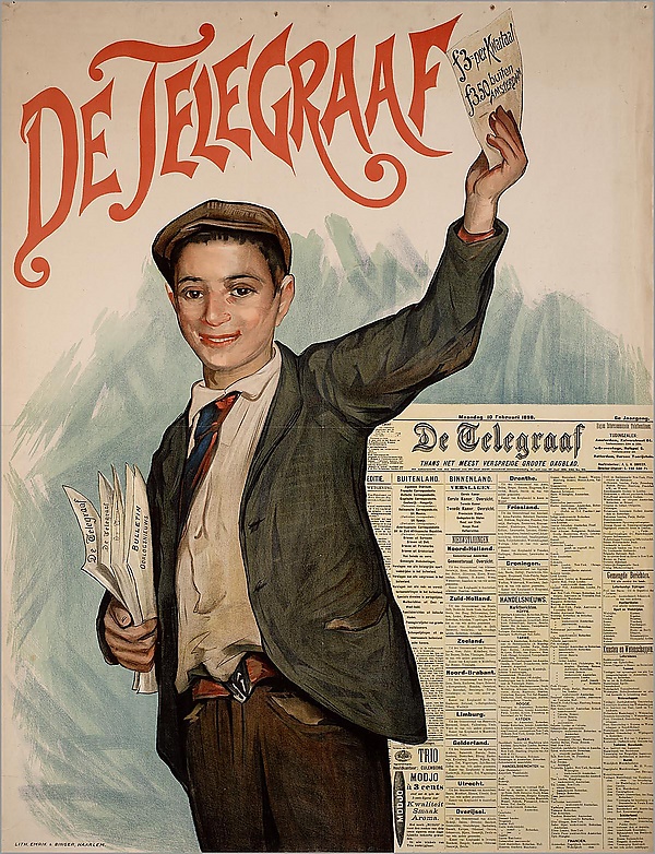 «Телеграаф» был основан Генри Тиндалем, который одновременно основал другую газету «De Courant» («The Gazette»). Первый тираж вышел 1 января 1893. После смерти Тиндаля 31 января 1902 типография «HMC Holdert», при поддержке финансистов, стала хозяином «Телеграаф» и «De Courant» 12 сентября 1902. Это стало хорошей инвестицией, потому что в период с 1903 по 1923 гг. типография Holdert покупала одну газету за другой. Компания добавила название «Amsterdamsche Courant» («Amsterdam Gazette») в качестве подзаголовка к газете «Телеграаф» и «Het Nieuws van den Dag» («Новости дня») к газете «De Courant». В 1926 году Holdert начал строительство нового объекта печати на улице Nieuwezijds Voorburgwal в Амстердаме, по проекту Дж. Ф. Стааля и Г.Дж. Лангхаута.