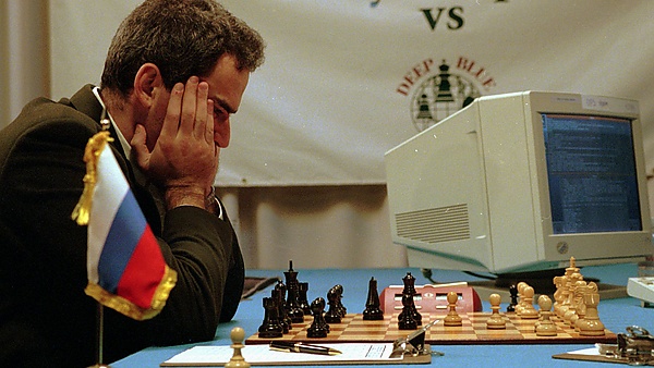 Га́рри Каспа́ров, чемпион мира по шахматам, сыграл два матча по шесть партий против суперкомпьютера Deep Blue от IBM[1]. Каспаров выиграл первый матч, состоявшийся в Филадельфии в 1996 году, со счетом 4:2. В 1997 году Deep Blue выиграл матч–реванш, проходивший в Нью-Йорке, со счетом 3½:2½. Второй матч стал первым поражением действующего чемпиона мира по шахматам от компьютера в турнирных условиях и стал темой документального фильма "Игра окончена: Каспаров против машины"[2].