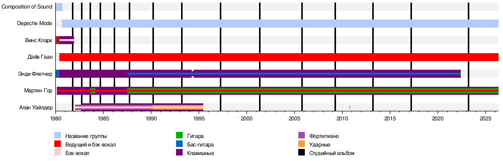 - Мартин Гор — клавишные, ведущий и бэк-вокал, гитары (1980 — наши дни)