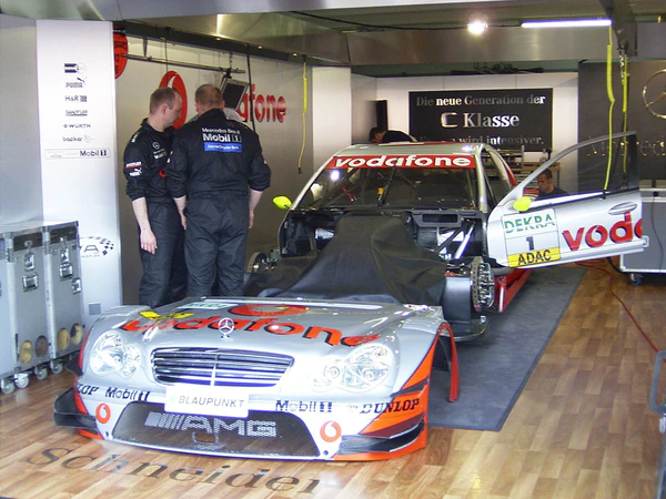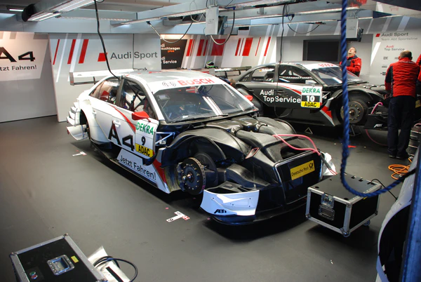 - Корпус. Машины DTM имеют лишь внешнее сходство с дорожными, и ни одной общей детали, кроме фар. Они построены на основе пространственной рамы с каркасом безопасности. Агрегаты в машине расположены так, чтобы максимально понизить центр тяжести и приблизить развесовку к 50/50 %. Сходство с дорожными машинами придают кузовные панели, которые крепятся на специальные защёлки и легко снимаются в боксах для обслуживания нужных узлов. Вместо стекла используется специальный пластик (Allzweck), не крошащийся на опасные осколки. С 2002 г. введена система HANS. Поведение машин DTM часто сравнивают с поведением машин с открытыми колёсами, это объясняет быструю адаптацию гонщиков из подобных серий. Тем не менее, прототип DTM остаётся всё же кузовным автомобилем, хоть и сильно продвинутым[9].