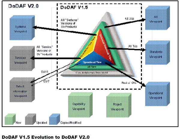 - ↑ Сравнение изменений в версии 2.0 относительно версии 1.5 DoDAF-фреймворка
