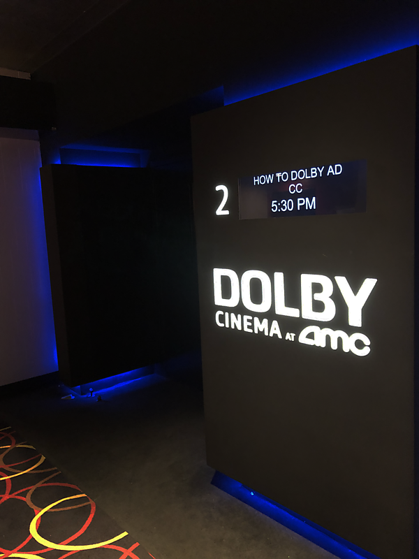 В большинстве кинотеатров Dolby есть изогнутый вход в видеостену, на котором отображается контент, связанный с художественным фильмом, играющим в зрительном зале. Контент, отображаемый на видеостене, специально создан киностудией и предназначен для погружения зрителей в кино до начала фильма[17]. Видео генерируется с помощью нескольких коротких проекторов высокой чёткости на входном потолке, а запатентованное программное обеспечение используется для пиксельного отображения различных изображений вдоль стены. Аналогичным образом, звук генерируется с помощью динамиков, расположенных в потолке входа.