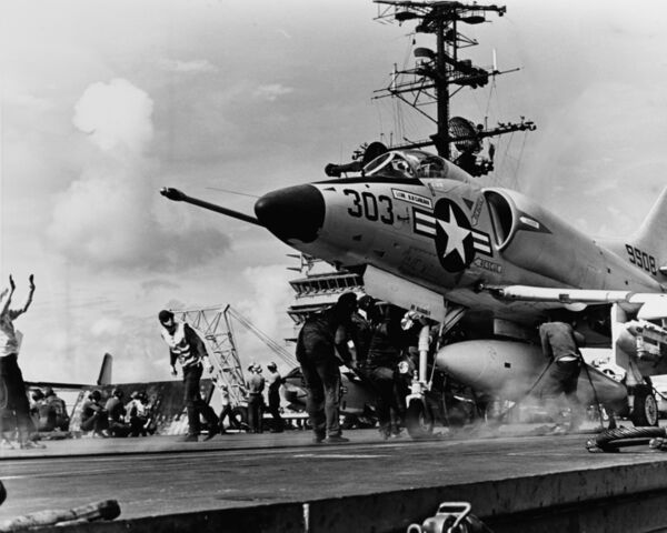 После прекращения бомбардировок Северного Вьетнама осенью 1968 года палубная авиация была переориентирована на действия в Южном Вьетнаме и Лаосе. «Скайхоки» уже заменялись новыми штурмовиками A-7 «Корсар» II. Когда весной 1972 года началась новая воздушная кампания против ДРВ, в боевых действиях приняли участие лишь несколько эскадрилий, вооружённых A-4F.