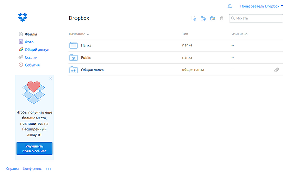 Сервис предлагает бесплатно 2 ГБ для хранения данных, которые можно увеличить бесплатно до 16 ГБ, приглашая новых пользователей или же получить несколько гигабайт после выполнения заданий (установка приложения Dropbox на мобильный телефон и т. д.). А также можно купить 1 ТБ.
