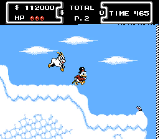 В игре игрок управляет селезнем Скруджем МакДаком одетым в чёрный цилиндр, пиджак и гамаши, с тростью и в пенсне.