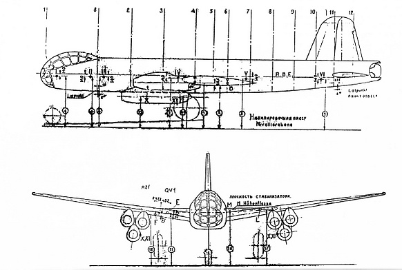 После капитуляции Германии советские войска захватили в Дассау недостроенный Ju-287V1. Параллельно проводился сбор немецких специалистов в различных областях. В начале 1946 года НКВД провело операцию по сбору и вербовке авиационных специалистов, так как работа в авиационной сфере бывших немецких специалистов была прямо запрещена, в результате значительную часть авиационных инженеров вывезли в подмосковное Подберезье[4], где предоставили комфортные условия для жизни и работы. Производственной базой для ещё безымянного ОКБ были участки авиационного завода № 256. В конце 1946 года немецкие специалисты были разделены на ОКБ-1 и ОКБ-2. ОКБ-1, состоявшее из сотрудников фирмы «Юнкерс», возглавил доктор Брунольф Бааде, специалист по стреловидности крыла, ранее работавший в КБ фирмы «Юнкерс», полем деятельности данного бюро были тяжёлые самолёты.[5] Наиболее перспективным из немецких проектов был признан вариант Ju 287 с шестью ТРД Jumo 004 под крылом, сгруппированные по три (Ju 287V3)[6][7].