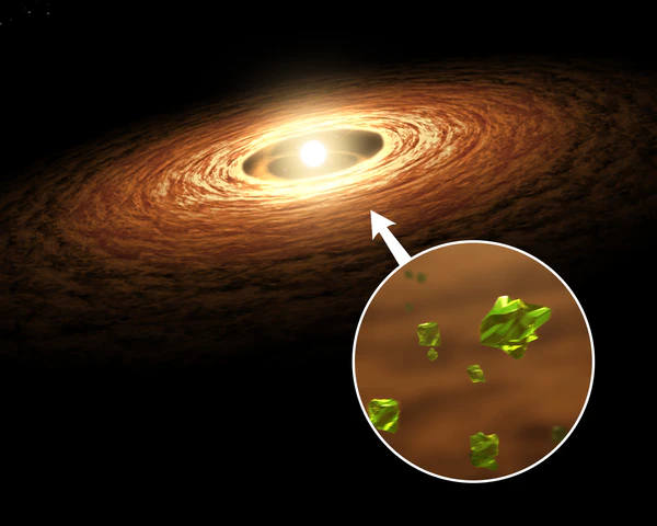 В 2005 году был открыт пылевой диск, обращающийся вокруг EX Волка[22]. Его внутренний край находится на расстоянии 0,2 а. е. от звезды и простирается в длину до 150 а. е. Масса диска оценивается в 0,025 M☉. Наблюдения с помощью космического телескопа Спитцер показали, что в составе диска присутствуют такие вещества как форстерит, энстатит и диоксид кремния — силикаты, встречающиеся в кометах и метеоритах в Солнечной системе. Астрономы предполагают, что они появились в результате резкого увеличения температуры во время мощных вспышек на EX Волка.