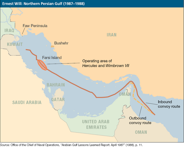 В конце 1986 года Кувейт обратился к сверхдержавам с просьбой защитить кувейтские танкеры от продолжающихся нападений. США поначалу проигнорировали эту просьбу, однако изменили свою позицию после того, как Советский Союз предоставил Кувейту несколько своих танкеров. В Персидский залив были отправлены дополнительные силы ВМС США, которые с 24 июля 1987 года начали эскортировать танкеры, что и стало началом операции «Earnest Will».