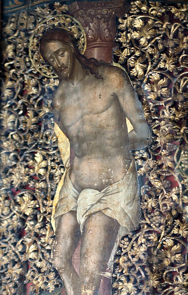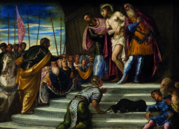 Тогда вышел Иисус в терновом венце и в багрянице. И сказал им Пилат: «се, Человек!» Когда же увидели Его первосвященники и служители, то закричали: «распни, распни Его!» Пилат говорит им: «возьмите Его вы, и распните; ибо я не нахожу в Нем вины».