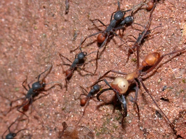 Огромные скопления кочевых муравьёв привлекают так называемых муравьиных птиц, таких как древолазовые или полосатые муравьеловки, которые используют муравьёв как загонщиков насекомых и других мелких членистоногих[20].