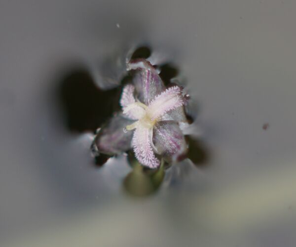 Цветки не более 8 мм в поперечнике. Тычиночные цветки с 9 тычинками, образуются в пазухах средних листьев, одиночные, на длинных цветоножках, ко времени цветения обрывающихся, после чего цветок свободно поднимается к водной поверхности и там раскрывается. Чашелистики яйцевидные, около 2 мм длиной, лепестки часто отсутствуют, если имеются, то не более 0,5 мм длиной. Пестичные цветки образуются в пазухах верхних листьев, приподнятые до водной поверхности с помощью сильно удлинённой цветочной трубки. Чашелистики около 1 мм длиной, лепестки белые, обратнояйцевидные, более крупные.