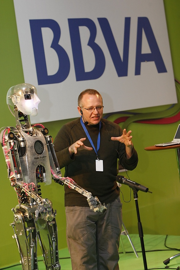 RoboThespian — интерактивный, аниматронный человекоподобный робот[8] с LCD-экранами вместо глаз[9], приводимый в действие пневмомоторами. Он говорит более чем на 30 языках и установлен на общественных площадках по всему миру[10].