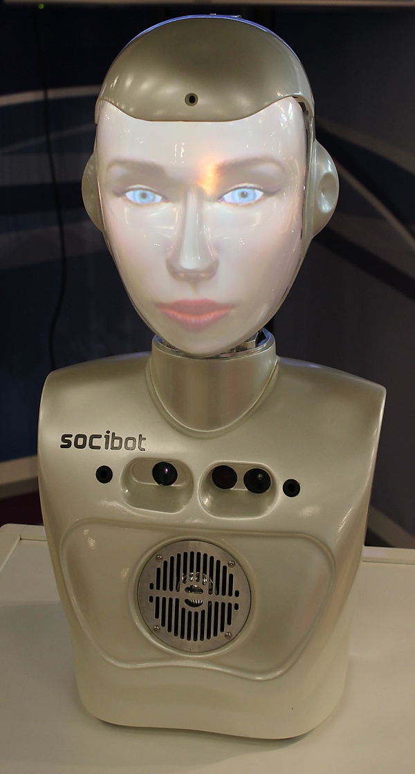 Socibot — это статичный корпус с проецируемым лицом. Он интегрирует ключевые технологии RoboThespian, но выполнен в настольном или киосковом форм-факторе[17]. Применяется компьютерная проекция лица и подвижная шея для простой и доступной демонстрации современных робототехнических решений[18].
