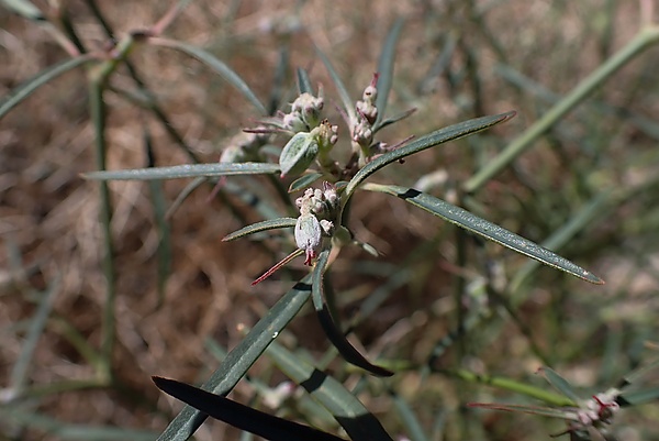 Период цветения в Аризоне — с февраля по октябрь; в Калифорнии — с марта по апрель; в Техасе — с января по декабрь. Это однолетнее травянистое растение высотой от 15 до 50 сантиметров. Листья длинные, узкие и заострённые, иногда с редкими волосками, длиной от 2 до 7 сантиметров. Листва может быть зеленоватого, фиолетового или красноватого оттенка. Соцветие появляется на кончике ветки и содержит тычинки и пестики шириной всего в несколько миллиметров. Плод — продолговатая коробочка длиной в полсантиметра с серыми и чёрными крапинками. Содержит бугристые белые или серые семена[2].