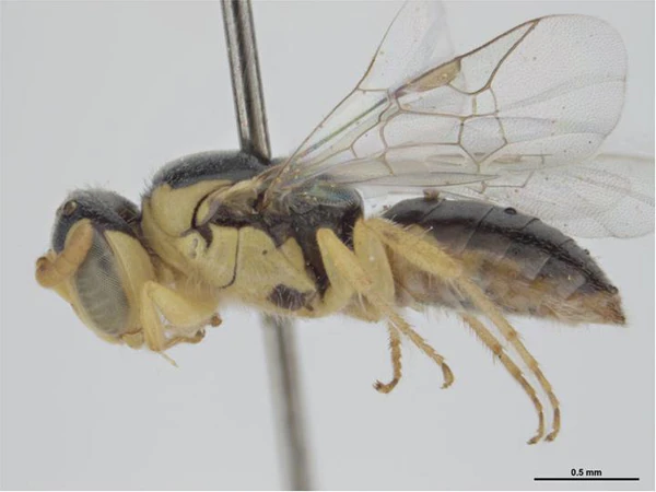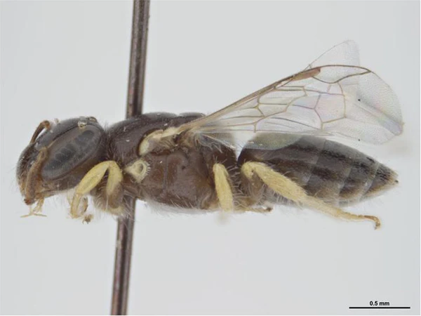 Мелкие пчёлы (от 2,5 до 3,5 мм). Окраска от чёрной с жёлтыми отметинами до полностью жёлтой. Жилкование переднего крыла редуцировано; вторая субмаргинальная поперечная жилка немного длиннее первой и передняя жилка второй субмаргинальной ячейки более или менее параллельна переднему краю крыла; нижний конец глаза самки немного выступает над передним сочленением нижней челюсти; наличник самки виден в профиль, образующий сплошную дугу с надклипеальной областью; базитибиальная пластинка самки, если она определена, не превышает 1/4 задней голени. Переднее крыло с двумя субмаргинальными ячейками. Скопа у самок отсутствует[2][3].