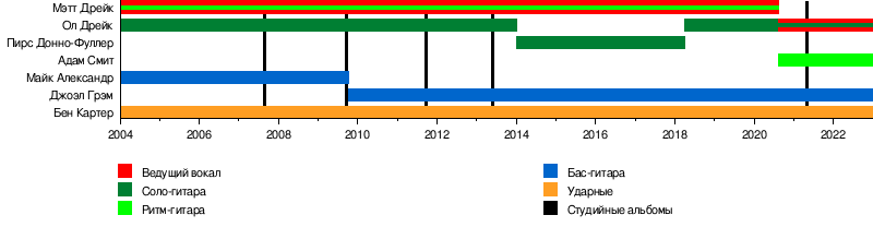 - Мэтт Дрейк — ведущий вокал, ритм-гитара, иногда соло-гитара (2004—2020; один концерт в 2021)