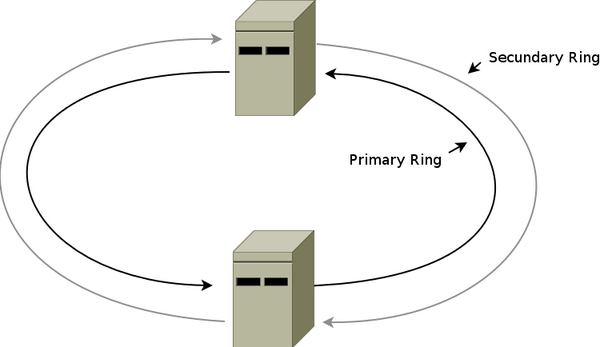 FDDI устанавливает применение двойных кольцевых сетей. Трафик по этим кольцам движется в противоположных направлениях. В физическом выражении кольцо состоит из двух или более двухточечных соединений между смежными станциями. Одно из двух колец FDDI называется первичным кольцом, другое-вторичным кольцом. Первичное кольцо используется для передачи данных, в то время как вторичное кольцо обычно является дублирующим.